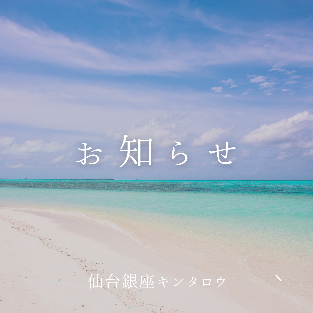 いつも仙台銀座キンタロウをご利用いただきありがとうございます。 9月25日(木) […]